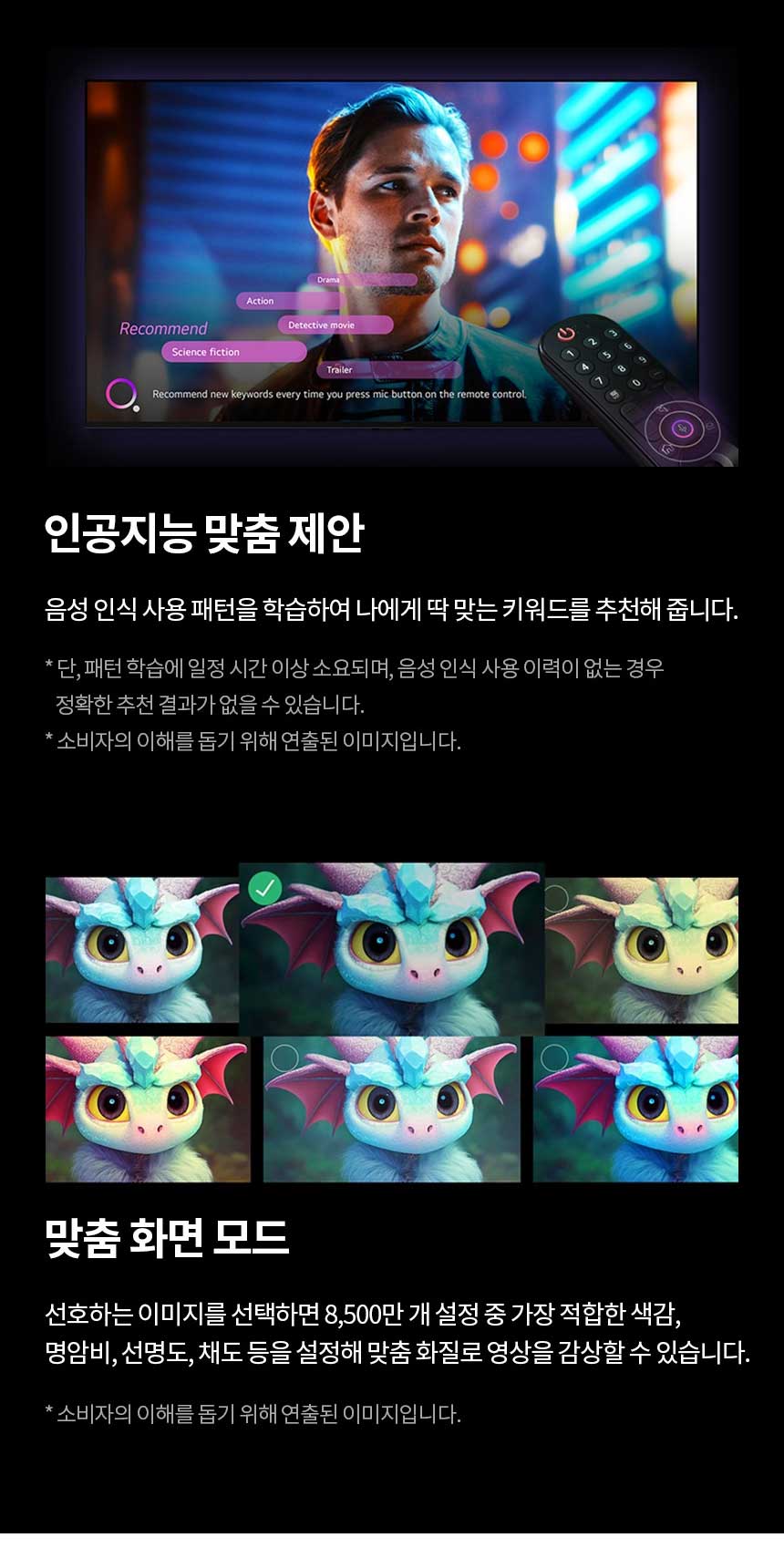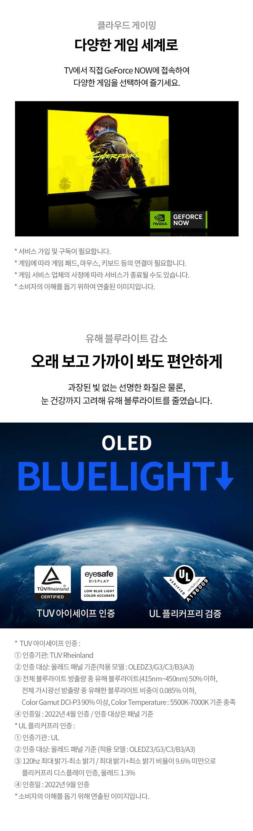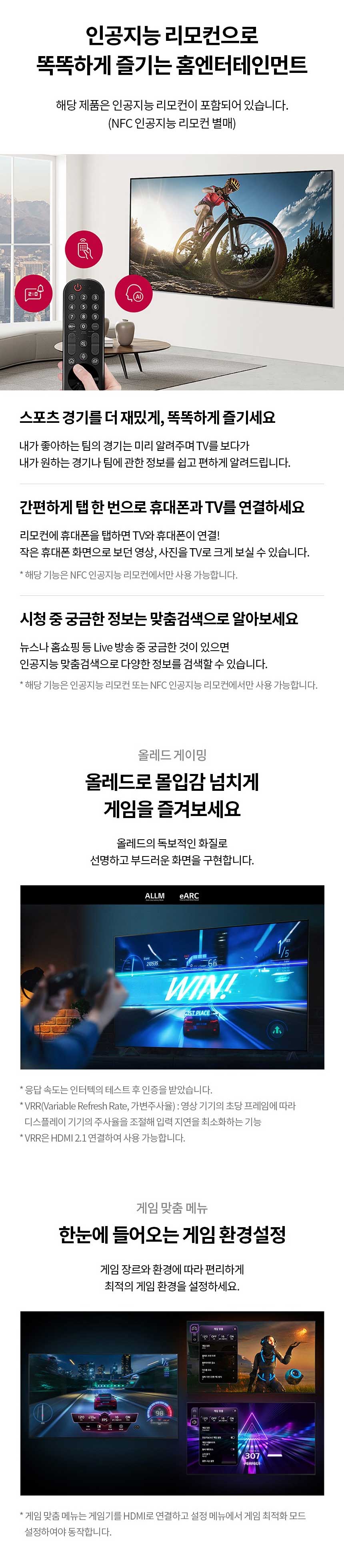 | 게이밍 | HGIG 모드, 게임 맞춤 기능, ALLM(Auto Low Latency Mode) |