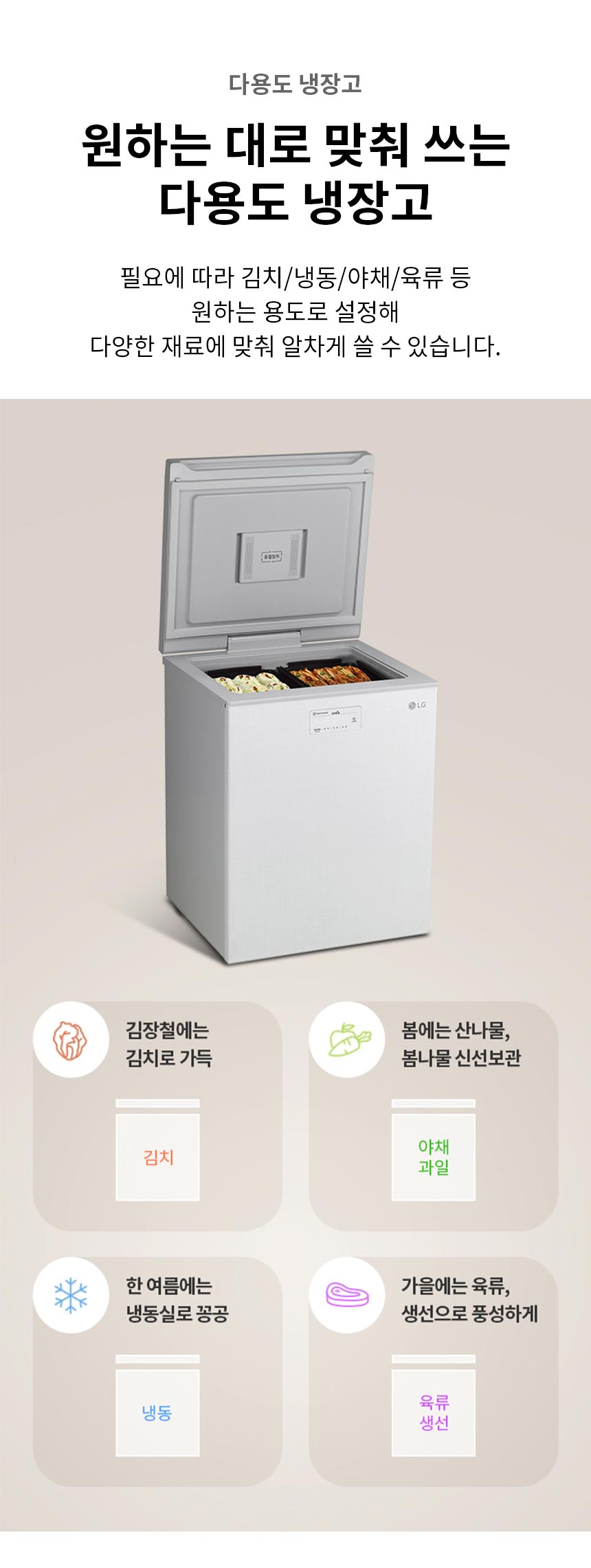 | 전환기능 | 김치(전칸), 냉동, 야채/과일, 육류/생선 |