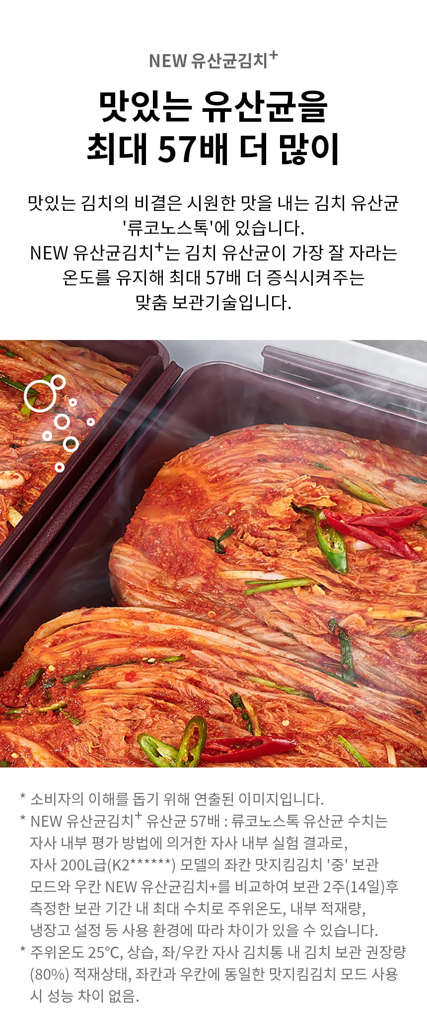 | 김치보관기능 | 익힘(전칸), NEW 유산균김치+, 유산균 인디케이터(전칸) |