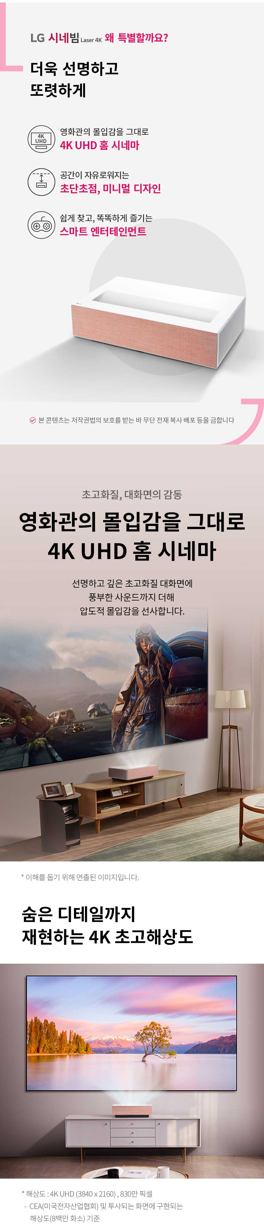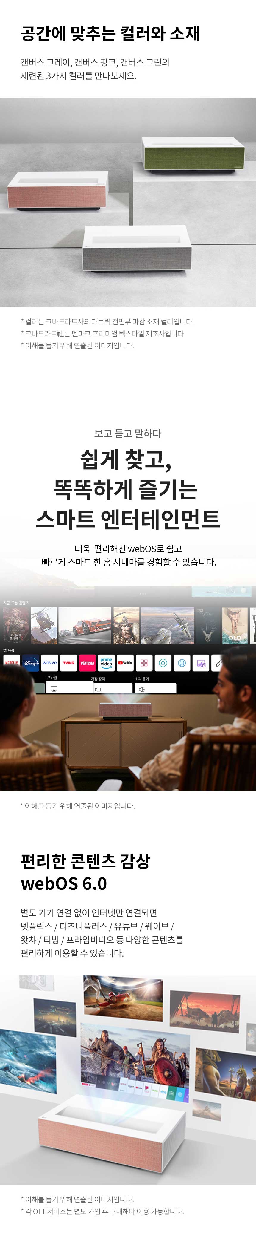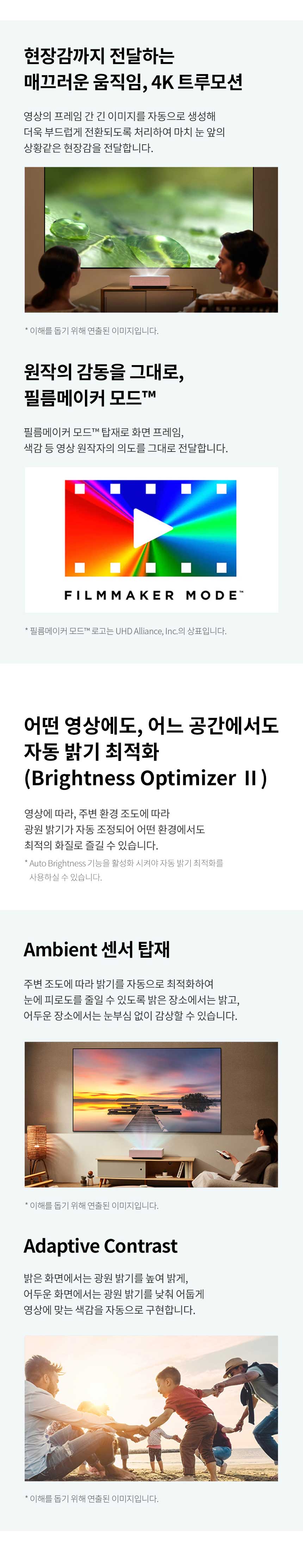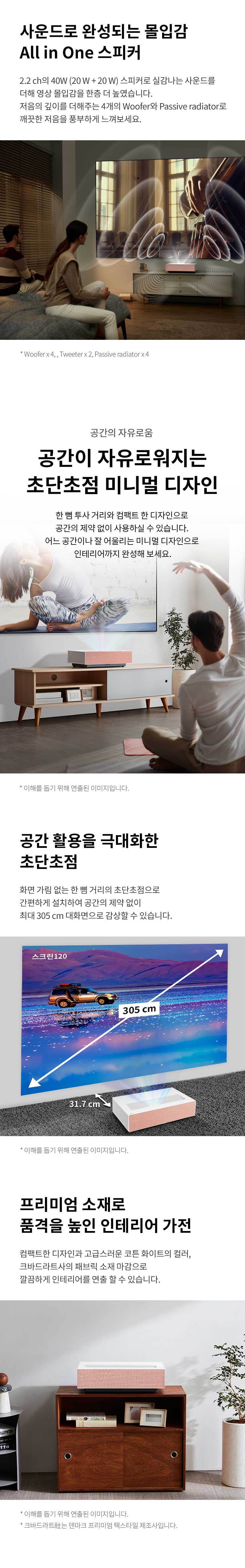 | 비고 | * Screen Share : Miracast 지원 기기와 무선 미러링 지원 * 크기: 돌출된 투사렌즈부, 튜너 등 제외한 규격임 |