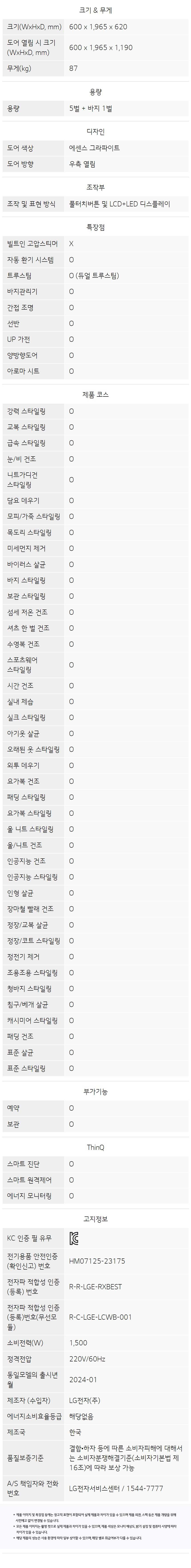 유의사항- 총 계약기간 동안 제품의 소유권은 회사(LG전자)에게 있습니다. - 계약/의무사용기간이 4년~6년인 상품은 계약기간 만료 후에 제품 소유권이 고객님께 이전됩니다. - 분실료 기준 : 제품판매가-{(제품판매가÷총 계약기간(개월 수) X 사용 개월 수}, 파손의 경우 분실료의 50% - 의무 사용기간 내에 해지 시 위약금 등 부대비용이 일부 발생할 수 있습니다. - 계약조건으로 지급 된 사은품에 대한, 비용 환수 기준 ①계약성립 후 12개월 이내 고객 요청에 의한 해지 시, 기 지급 받은 사은품에 해당하는 금액(전액)이 부과됩니다. ②현금성 사은품 : 사은품 액면 금액 / 비현금성 사은품: LG전자 사은품 구매단가 기준 적용 - 월 요금 납부일의 경우, 계약일 기준으로 자동 적용됩니다. - 제휴 카드의 전월 실적에 따라 구독 월 요금이 청구 할인됩니다. - 계약기간 종료 후에는 케어쉽을 이용하실 수 있습니다. |